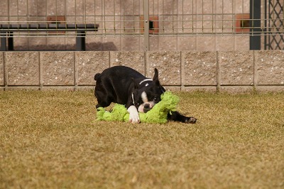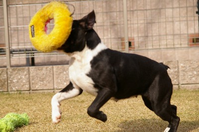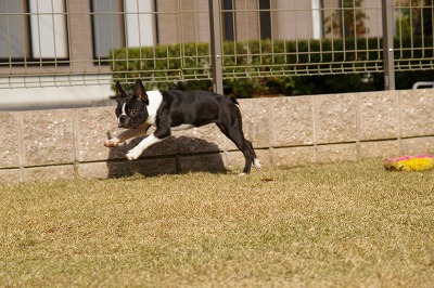 モトコランドの在舎犬のボストンテリアの女の子(生後約6ヶ月)です。スタッフが大好きなこの女の子はドッグランの中でもスタッフを追いかけたりする姿がよく見られました。