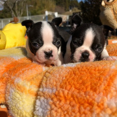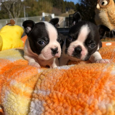 12月20日にボストンテリアの子犬たちが産まれました!男の子も女の子も産まれています。母乳を飲んですくすく育ってきています。今は少しずつ離乳食を食べる練習をしています。元気に育ってきていますよ!
