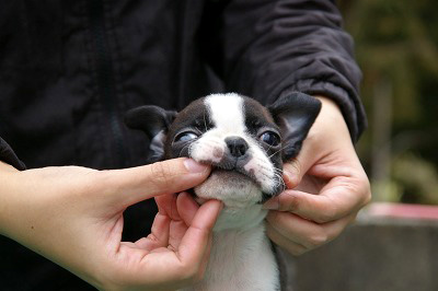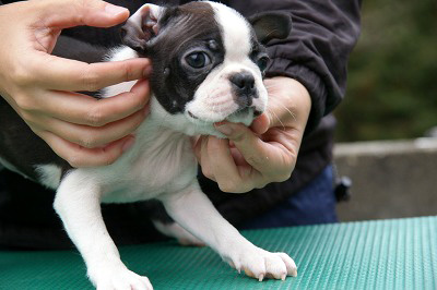 徳島県の友永様がご予約されているボストンテリア(女の子、ボストンカラー)です。