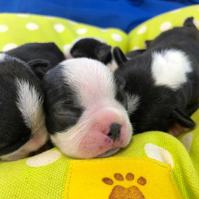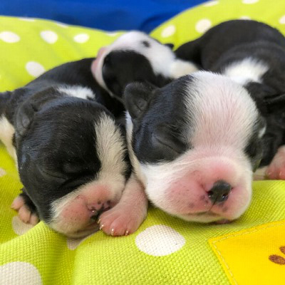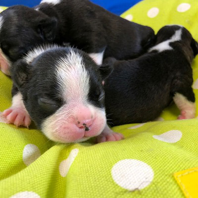 7月26日生まれのボストンテリアの姉妹です。全員女の子でしたよ。