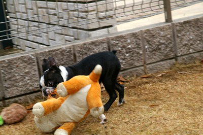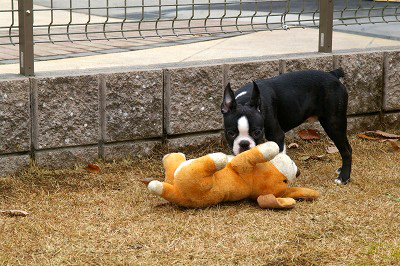 7月23日生まれのボストンテリアの男の子は兄妹と仲良しでサークル内で楽しそうに遊んだり、