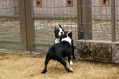 運動場では年の近いミニチュアシュナウザーやポメラニアンの子たちと仲良く遊んでいます。