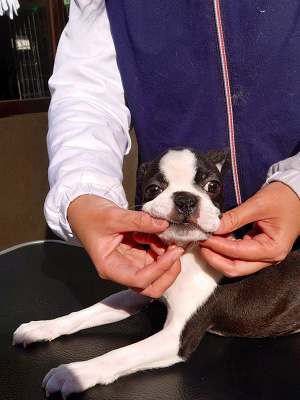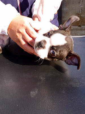 続いて下段の写真は2021年1月10日からパピー合宿がスタートした中村様のボストンテリアの女の子の練習中の風景です。