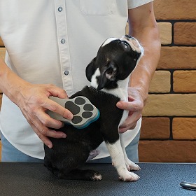 ブラッシングには短毛犬種用の「ラバーブラシ」を使っています。