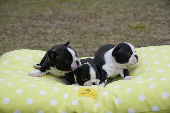 ちょうど生後30日目になるボストンテリアの3兄弟です。